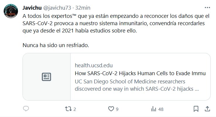 A todos los expertos™ que ya están empezando a reconocer los daños que el SARS-CoV-2 provoca a nuestro sistema inmunitario, convendría recordarles que ya desde el 2021 había estudios sobre ello. Nunca ha sido un resfriado