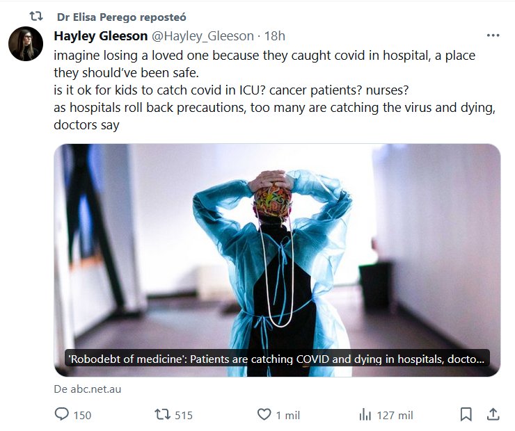 EN INGLÉS Imagínense perder a un ser querido porque contrajeron covid en el hospital, un lugar donde deberían haber estado seguros. ¿Está bien que los niños contraigan covid en la UCI? ¿pacientes con cáncer? enfermeras? A medida que los hospitales reducen las precauciones, demasiadas personas contraen el virus y mueren, dicen los médicos.