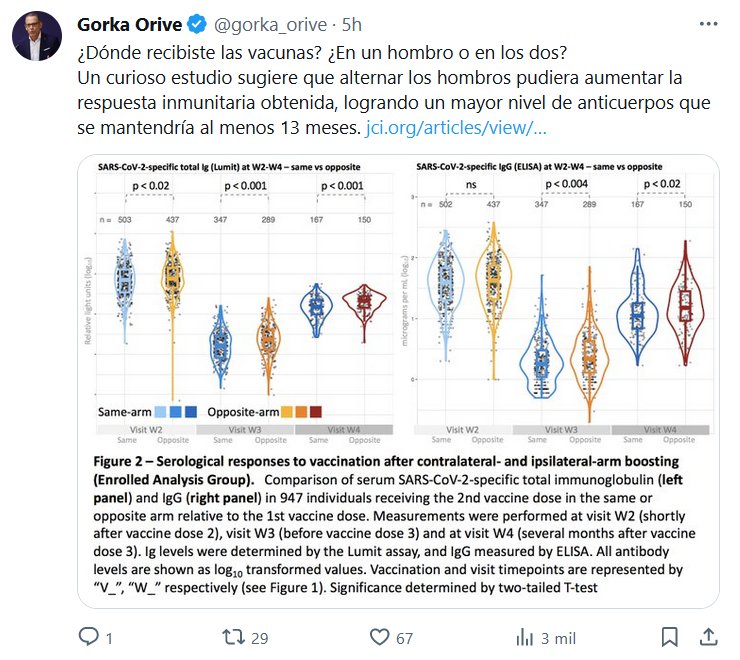 ¿Dónde recibiste las vacunas? ¿En un hombro o en los dos? Un curioso estudio sugiere que alternar los hombros pudiera aumentar la respuesta inmunitaria obtenida, logrando un mayor nivel de anticuerpos que se mantendría al menos 13 meses