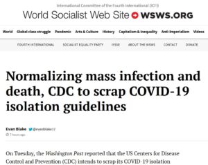 CRIMEN ORGANIZADO MUNDIAL (EN INGLÉS) Normalizando la infección y la muerte masivas, los CDC eliminarán las pautas de aislamiento de COVID-19 Posted on febrero 14, 2024 por coronado https://www.wsws.org/en/articles/2024/02/14/cdc--f14.html