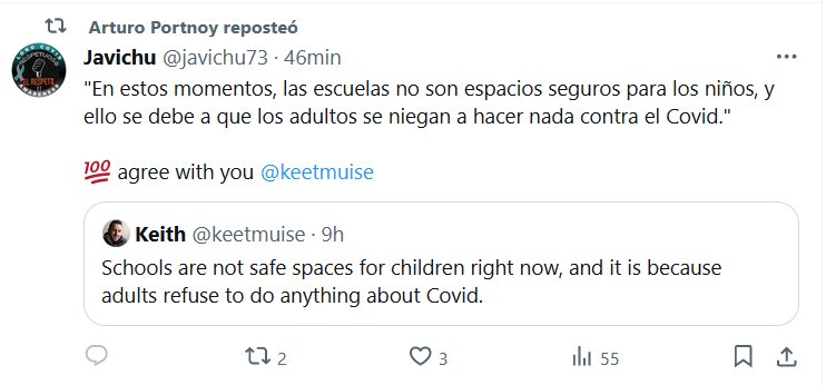 LESA HUMANIDAD «En estos momentos, las escuelas no son espacios seguros para los niños, y ello se debe a que los adultos se niegan a hacer nada contra el Covid.» Posted on febrero 14, 2024 por coronado