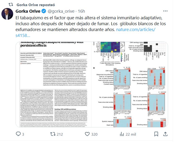 LOS FUMADORES MÁS PROPENSOS A COVID? El tabaquismo es el factor que más altera el sistema inmunitario adaptativo, incluso años después de haber dejado de fumar. Los glóbulos blancos de los exfumadores se mantienen alterados durante años