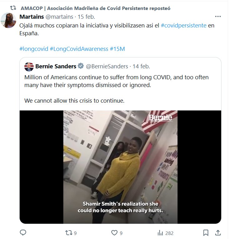 Ojalá muchos copiaran la iniciativa y visibilizasen asi el #covidpersistente en España. #longcovid #LongCovidAwareness #15M Posted on febrero 17, 2024 por coronado https://twitter.com/i/status/1757857725050941688