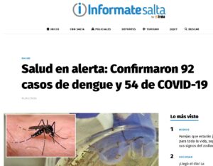 Salud en alerta: Confirmaron 92 casos de dengue y 54 de COVID-19 – Informate Salta Posted on febrero 17, 2024 por coronado https://informatesalta.com.ar/contenido/376989/salud-en-alerta-confirmaron-92-casos-de-dengue-y-54-saltenos-diagnosticados-con-