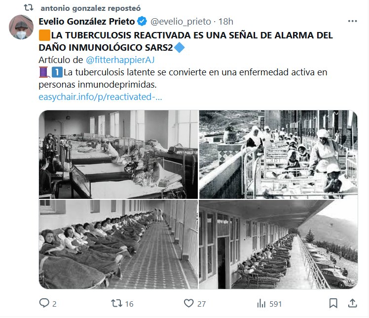 🟧LA TUBERCULOSIS REACTIVADA ES UNA SEÑAL DE ALARMA DEL DAÑO INMUNOLÓGICO SARS2🔷 Artículo de @fitterhappierAJ Posted on febrero 18, 2024 por coronado https://www.easychair.info/p/reactivated-tb-is-a-bellweather-for
