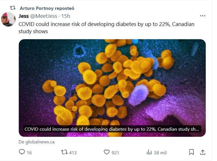 EN INGLÉS COVID podría aumentar el riesgo de desarrollar diabetes hasta en un 22%, muestra un estudio canadiense Posted on febrero 19, 2024 por coronado