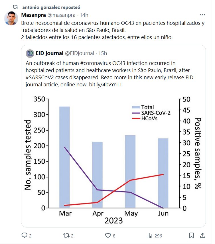 COVID-24? Brote nosocomial de coronavirus humano OC43 en pacientes hospitalizados y trabajadores de la salud en São Paulo, Brasil. 2 fallecidos entre los 16 pacientes afectados, entre ellos un niño