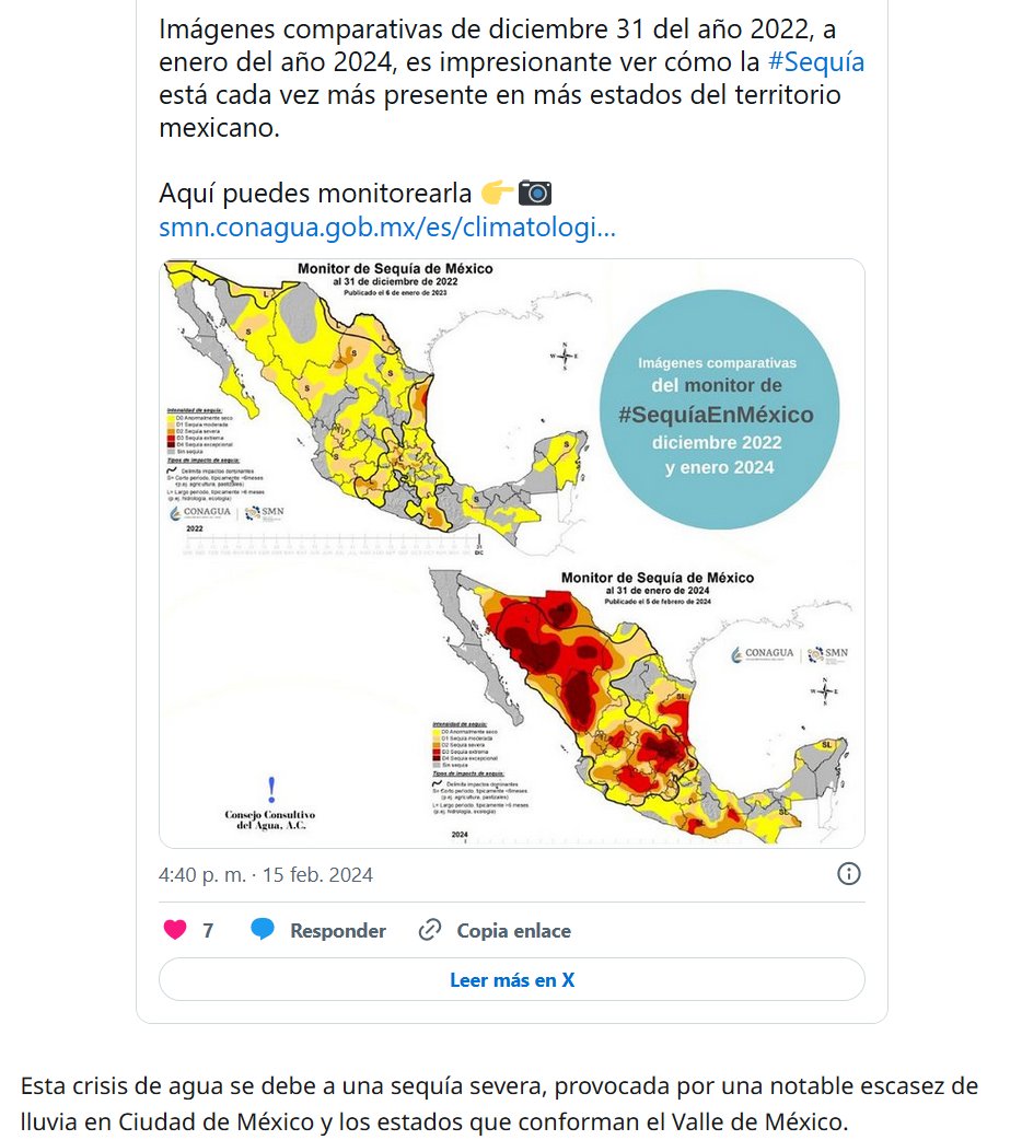 MÁS PLAGAS BÍBLICAS: MÉXICO SIN AGUA POR SEQUÍA Ciudad de México enfrenta una crisis hídrica preocupante, debido que el Sistema Cutzamala, fuente principal para la capital, continúa registrando bajos niveles de almacenamiento