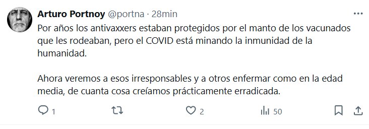 Por años los antivaxxers estaban protegidos por el manto de los vacunados que les rodeaban, pero el COVID está minando la inmunidad de la humanidad. Ahora veremos a esos irresponsables y a otros enfermar como en la edad media, de cuanta cosa creíamos prácticamente erradicada.