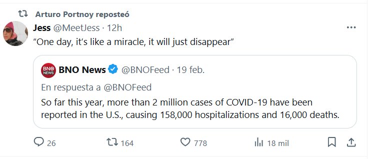 EN INGLÉS En lo que va del año, se han reportado más de 2 millones de casos de COVID-19 en Estados Unidos, causando 158.000 hospitalizaciones y 16.000 muertes Posted on febrero 21, 2024 por coronado