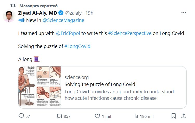 📣 Nuevo en @ScienceMagazine Me asocié con @EricTopol para escribir esta #PerspectivaCIENTÍFICA sobre el Covid prolongado Resolviendo el rompecabezas de #LongCovid Posted on febrero 23, 2024 por coronado https://www.science.org/doi/10.1126/science.adl0867
