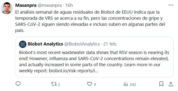 El análisis semanal de aguas residuales de Biobot de EEUU indica que la temporada de VRS se acerca a su fin, pero las concentraciones de gripe y SARS-CoV-2 siguen siendo elevadas e incluso suben en algunas partes del país.