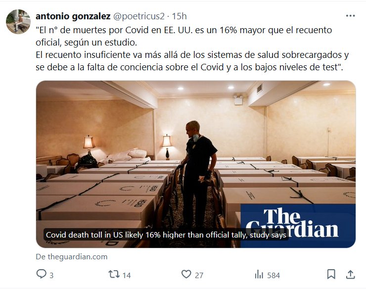 «El n° de muertes por Covid en EE. UU. es un 16% mayor que el recuento oficial, según un estudio. El recuento insuficiente va más allá de los sistemas de salud sobrecargados y se debe a la falta de conciencia sobre el Covid y a los bajos niveles de test»