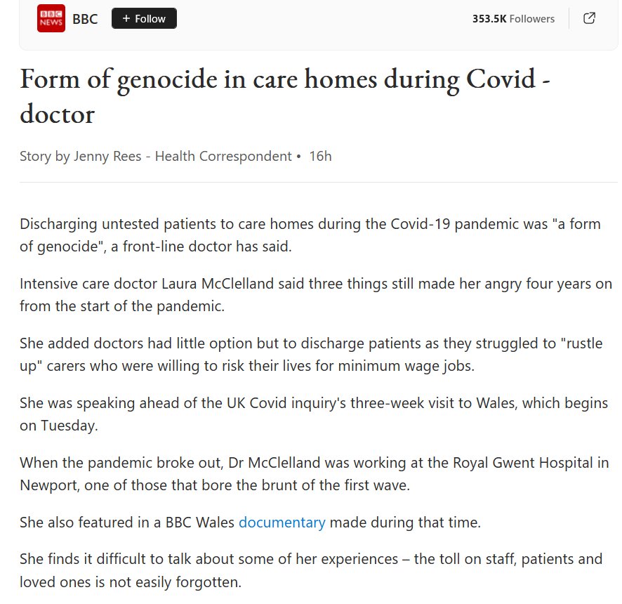 EN INGLÉS Forma de genocidio en residencias durante el Covid: médico Posted on febrero 25, 2024 por coronado https://www.msn.com/en-us/health/other/form-of-genocide-in-care-homes-during-covid-doctor/ar-BB1iPvqD