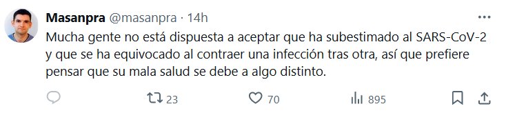 Mucha gente no está dispuesta a aceptar que ha subestimado al SARS-CoV-2 y que se ha equivocado al contraer una infección tras otra, así que prefiere pensar que su mala salud se debe a algo distinto