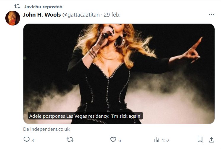 NO DIGAS LA PALABRA COVID (EN INGLÉS) Adele ha dicho a sus fans que pospondrá todas sus fechas de residencia en Las Vegas en marzo debido a una enfermedad Posted on marzo 1, 2024 por coronado https://www.independent.co.uk/arts-entertainment/music/news/adele-vegas-march-dates-sick-reschedule-b2503764.html