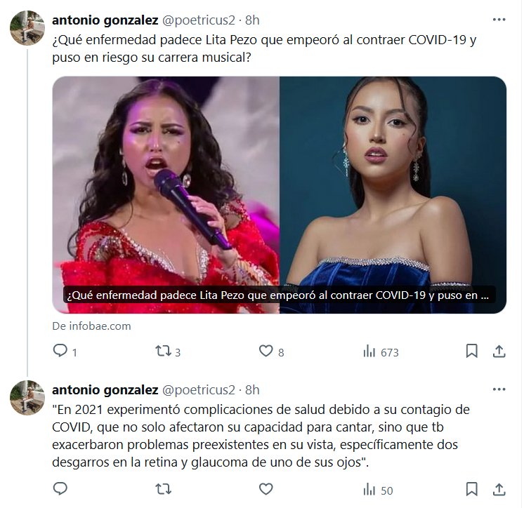 ¿Qué enfermedad padece Lita Pezo que empeoró al contraer COVID-19 y puso en riesgo su carrera musical? Posted on marzo 1, 2024 por coronado