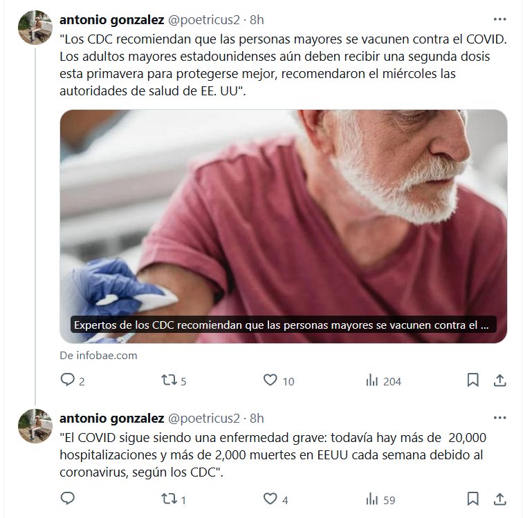 RECOMIENDAN VACUNACIÓN «El COVID sigue siendo una enfermedad grave: todavía hay más de 20,000 hospitalizaciones y más de 2,000 muertes en EEUU cada semana debido al coronavirus, según los CDC»