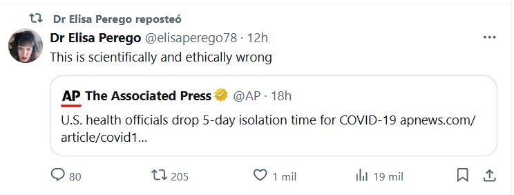 EN INGLÉS Dra. Elisa Perego @elisaperego78 Esto es científica y éticamente incorrecto: Funcionarios de salud de EE. UU. eliminan el tiempo de aislamiento de 5 días para COVID-19 Posted on marzo 2, 2024 por coronado