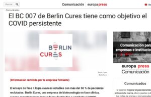 El ensayo de fase II logra avances notables con más del 50 % de pacientes reclutados. Berlin Cures, una empresa de biotecnología en fase clínica, avanza en tratamientos innovadores destinados a combatir el COVID persistente, que actualmente afecta a más de 100 millones de personas en todo el mundo.
