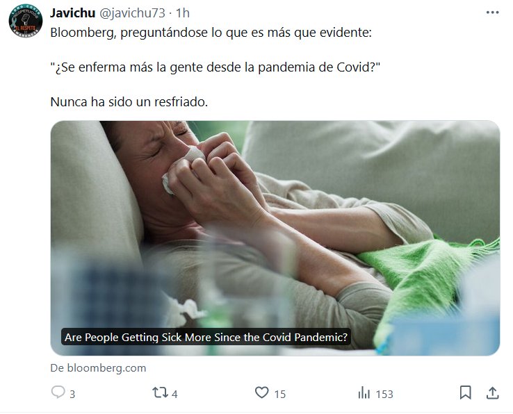 LOS COVIDIOTAS NO ESTÁN SOLOS Bloomberg, preguntándose lo que es más que evidente: «¿Se enferma más la gente desde la pandemia de Covid?» Nunca ha sido un resfriado. Posted on marzo 4, 2024 por coronado