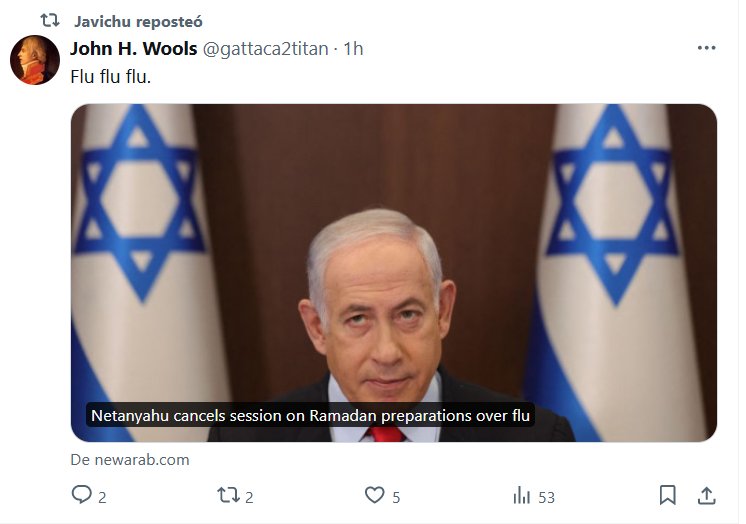 NO DIGAS COVID, GRIPALIZA (EN INGLÉS) Netanyahu cancela sesión sobre los preparativos del Ramadán por la gripe Posted on marzo 5, 2024 por coronado https://www.newarab.com/news/netanyahu-cancels-session-ramadan-preparations-over-flu
