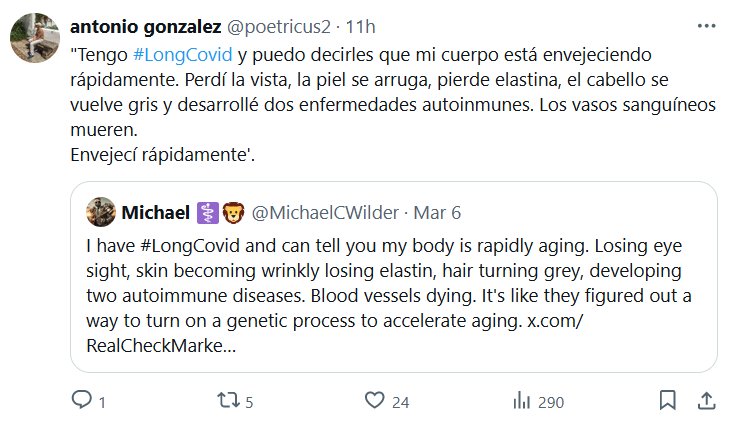 FELICES LOS MUERTOS, QUE POR LO MENOS PUDIERON MORIR! TESTIMONIOS «Tengo #LongCovid y puedo decirles que mi cuerpo está envejeciendo rápidamente. Perdí la vista, la piel se arruga, pierde elastina, el cabello se vuelve gris y desarrollé dos enfermedades autoinmunes. Los vasos sanguíneos mueren. Envejecí rápidamente’.