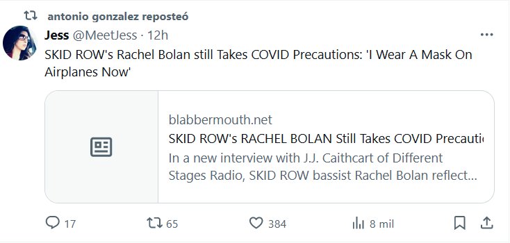 EN INGLÉS: SKID ROW Rachel Bolan todavía toma precauciones de COVID: ‘Ahora uso una máscara en los aviones’ Posted on marzo 9, 2024 por coronado
