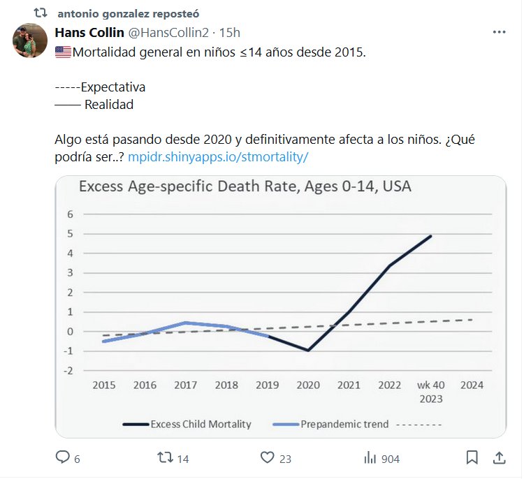 IRONÍA PARA LOS COVIDIOTAS 🇺🇸Mortalidad general en niños ≤14 años desde 2015. —–Expectativa —— Realidad Algo está pasando desde 2020 y definitivamente afecta a los niños. ¿Qué podría ser..?