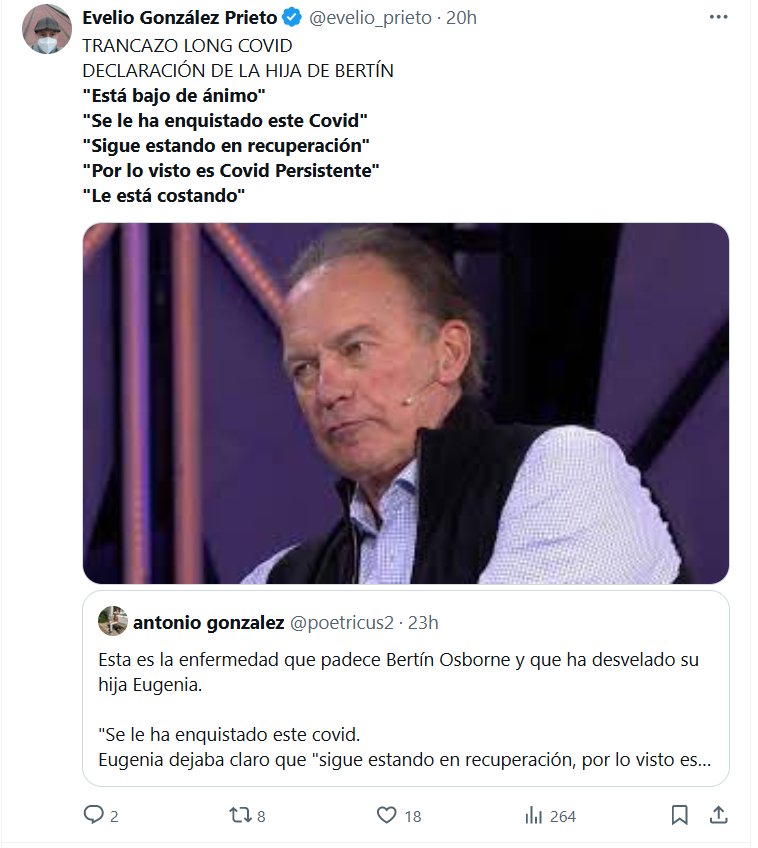NO HABRÍA QUE HABERLE CREÍDO AL ESTABLISHMENT: NO ERA LEVE! TRANCAZO LONG COVID DECLARACIÓN DE LA HIJA DE BERTÍN «Está bajo de ánimo» «Se le ha enquistado este Covid» «Sigue estando en recuperación» «Por lo visto es Covid Persistente» «Le está costando»