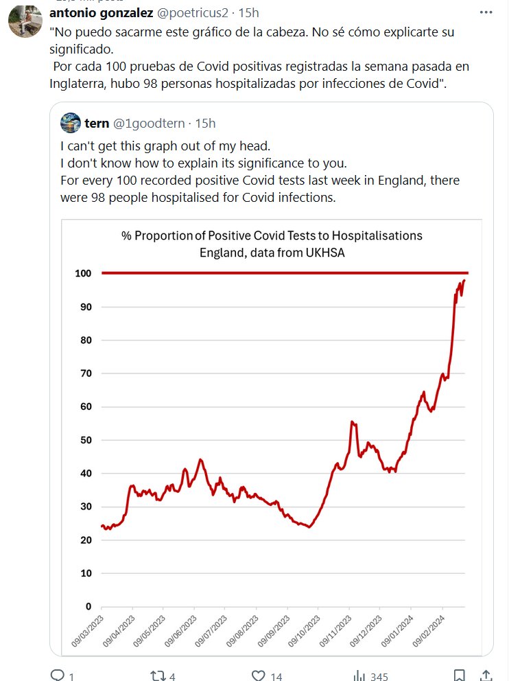 HIDDEN LETHALITY «No puedo sacarme este gráfico de la cabeza. No sé cómo explicarte su significado. Por cada 100 pruebas de Covid positivas registradas la semana pasada en Inglaterra, hubo 98 personas hospitalizadas por infecciones de Covid»