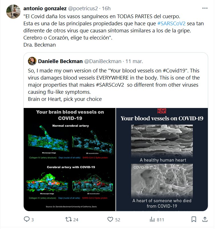 LA CAJA PANDORA COVID ESTÁ ABIERTA «El Covid daña los vasos sanguíneos en TODAS PARTES del cuerpo. Esta es una de las principales propiedades que hace que #SARSCoV2 sea tan diferente de otros virus que causan síntomas similares a los de la gripe. Cerebro o Corazón, elige tu elección». Dra. Beckman