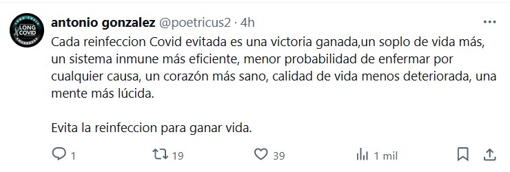 Cada reinfeccion Covid evitada es una victoria ganada,un soplo de vida más, un sistema inmune más eficiente, menor probabilidad de enfermar por cualquier causa, un corazón más sano, calidad de vida menos deteriorada, una mente más lúcida. Evita la reinfeccion para ganar vida.