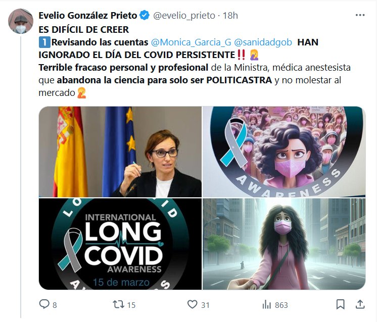 ES DIFÍCIL DE CREER 1⃣Revisando las cuentas @Monica_Garcia_G @sanidadgob HAN IGNORADO EL DÍA DEL COVID PERSISTENTE‼️🤦♀️ Terrible fracaso personal y profesional de la Ministra, médica anestesista que abandona la ciencia para solo ser POLITICASTRA y no molestar al mercado🤦