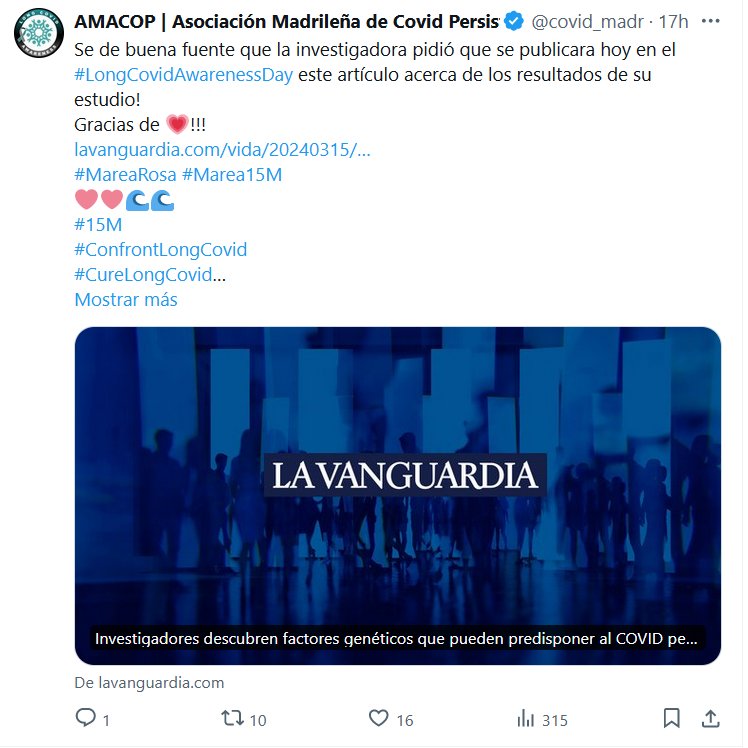 Investigadores descubren factores genéticos que pueden predisponer al COVID persistente Posted on marzo 16, 2024 por coronado https://www.lavanguardia.com/vida/20240315/9563614/investigadores-descubren-factores-geneticos-predisponer-covid-persistente-agenciaslv20240315.html