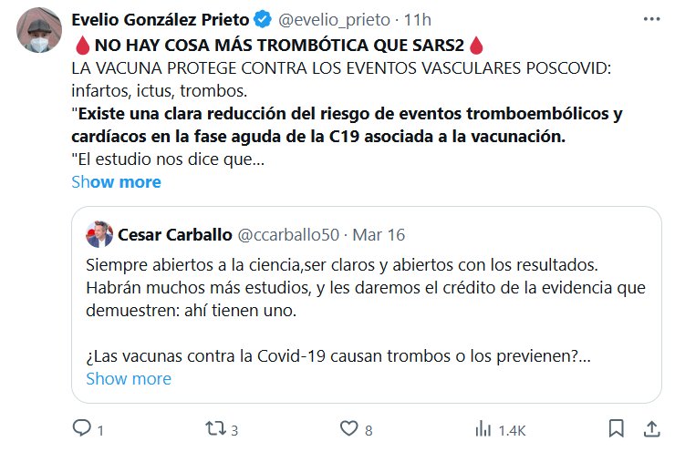 🩸NO HAY COSA MÁS TROMBÓTICA QUE SARS2🩸 LA VACUNA PROTEGE CONTRA LOS EVENTOS VASCULARES POSCOVID: infartos, ictus, trombos. «Existe una clara reducción del riesgo de eventos tromboembólicos y cardíacos en la fase aguda de la C19 asociada a la vacunación…»