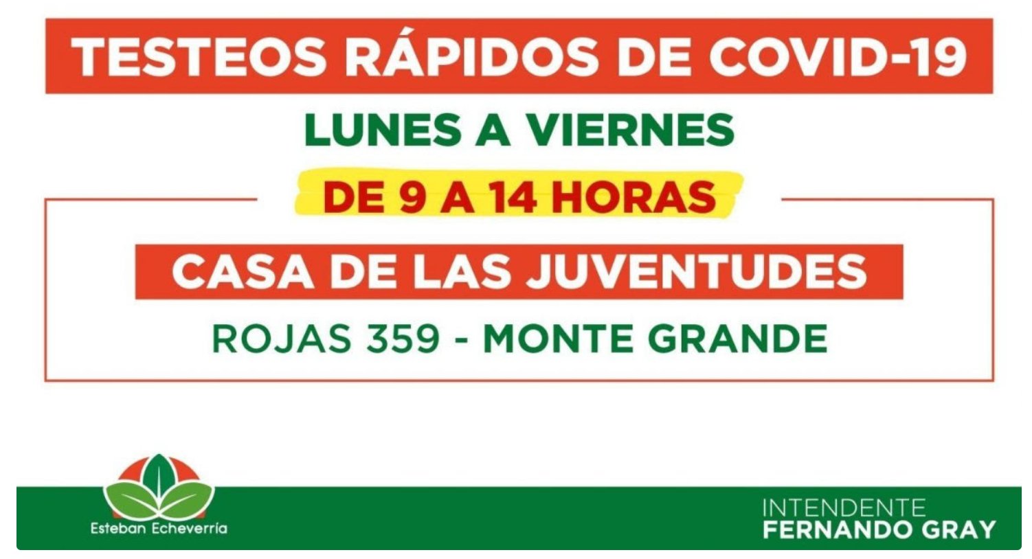 BRAVO! PREVENCIÓN, CONTROL Y REACCIÓN ES LA FÓRMULA TESTEOS DE COVID-19 EN ESTEBAN ECHEVERRÍA Hasta el viernes 22 de marzo, el Municipio de Esteban Echeverría continúa realizando testeos gratuitos de COVID-19