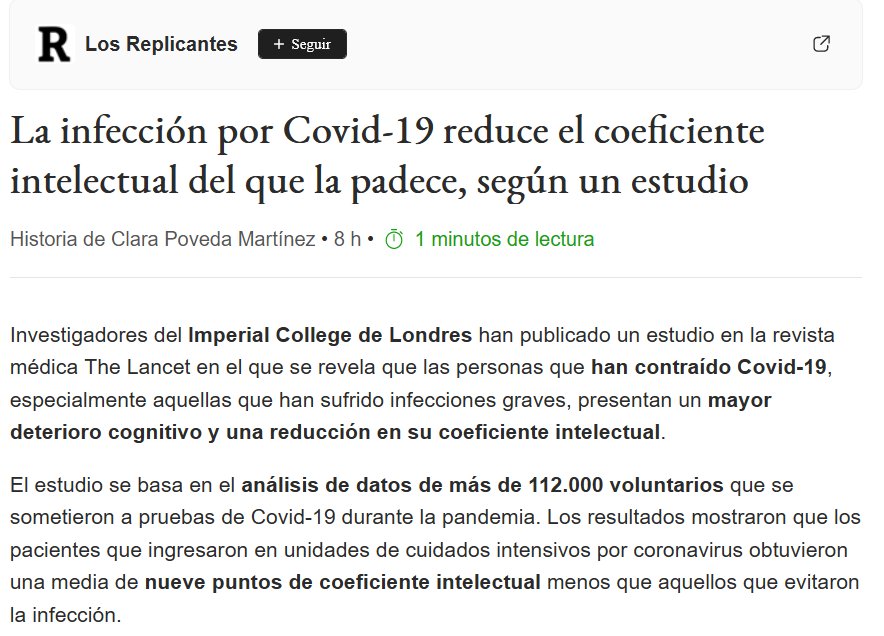 HACE FALTA QUE TE LO REPITA? La infección por Covid-19 reduce el coeficiente intelectual del que la padece, según un estudio Científicos del Imperial College de Londres (Reino Unido) analizaron datos de más de 112.000 voluntarios