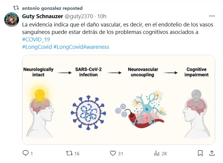 La evidencia indica que el daño vascular, es decir, en el endotelio de los vasos sanguíneos puede estar detrás de los problemas cognitivos asociados a #COVID_19 Posted on marzo 17, 2024 por coronado