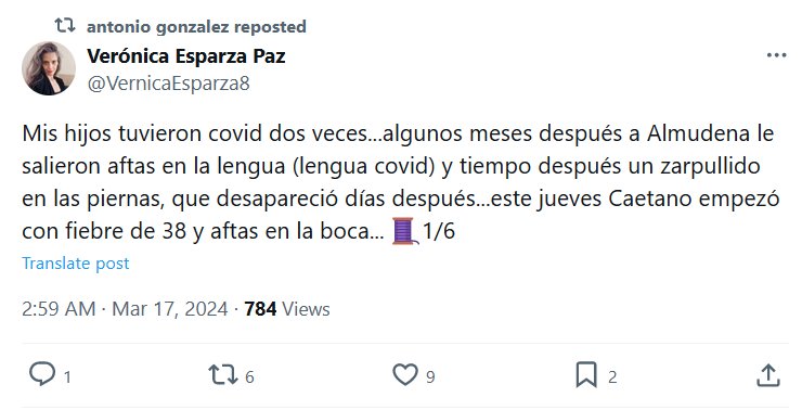 TESTIMONIOS Mis hijos tuvieron covid dos veces…algunos meses después a Almudena le salieron aftas en la lengua (lengua covid) y tiempo después un zarpullido en las piernas, que desapareció días después…este jueves Caetano empezó con fiebre de 38 y aftas en la boca…