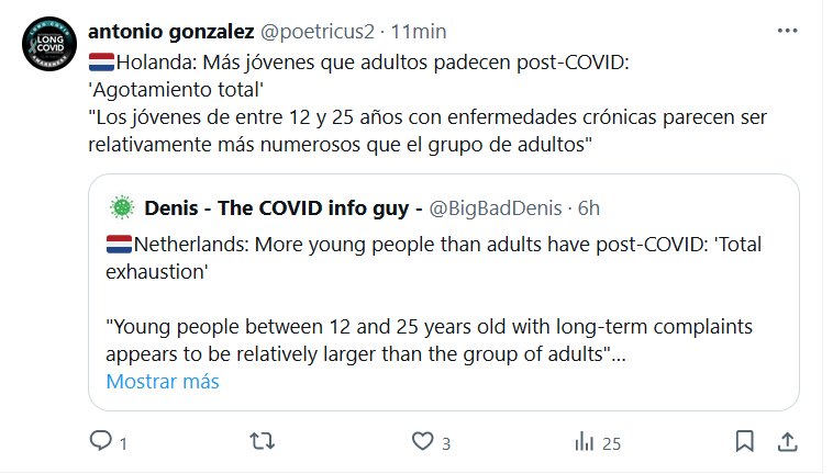 LA ÚNICA VERDAD SIGUE SIENDO LA REALIDAD 🇳🇱Holanda: Más jóvenes que adultos padecen post-COVID: ‘Agotamiento total’ «Los jóvenes de entre 12 y 25 años con enfermedades crónicas parecen ser relativamente más numerosos que el grupo de adultos»