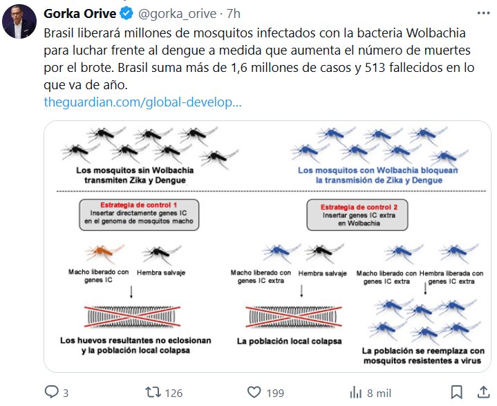 PARAPANDEMIA-SS: Y PARECE QUE FUNCIONARÍA! Brasil liberará millones de mosquitos infectados con la bacteria Wolbachia para luchar frente al dengue a medida que aumenta el número de muertes por el brote. Brasil suma más de 1,6 millones de casos y 513 fallecidos en lo que va de año