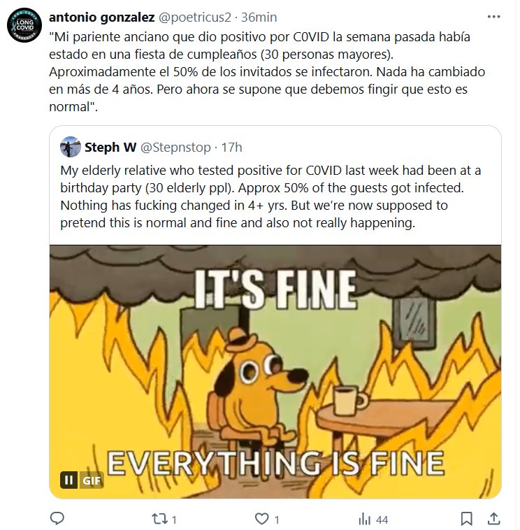 TESTIMONIOS «Mi pariente anciano que dio positivo por C0VID la semana pasada había estado en una fiesta de cumpleaños (30 personas mayores). Aproximadamente el 50% de los invitados se infectaron. Nada ha cambiado en más de 4 años. Pero ahora se supone que debemos fingir que esto es normal»