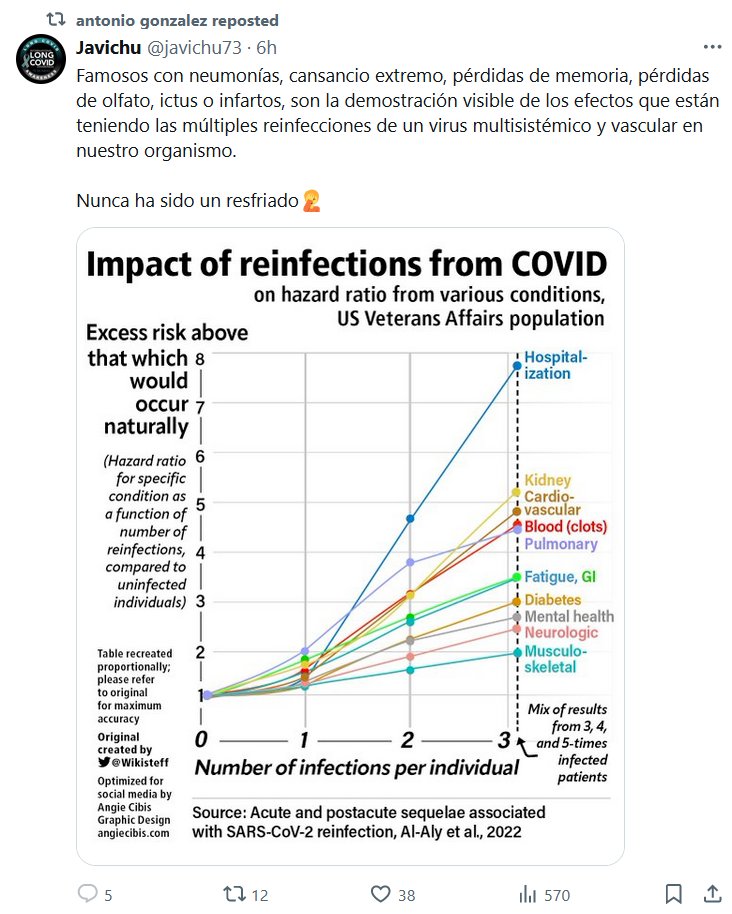 TERRIBLE CUADRO Famosos con neumonías, cansancio extremo, pérdidas de memoria, pérdidas de olfato, ictus o infartos, son la demostración visible de los efectos que están teniendo las múltiples reinfecciones de un virus multisistémico y vascular en nuestro organismo. Nunca ha sido un resfriado🤦