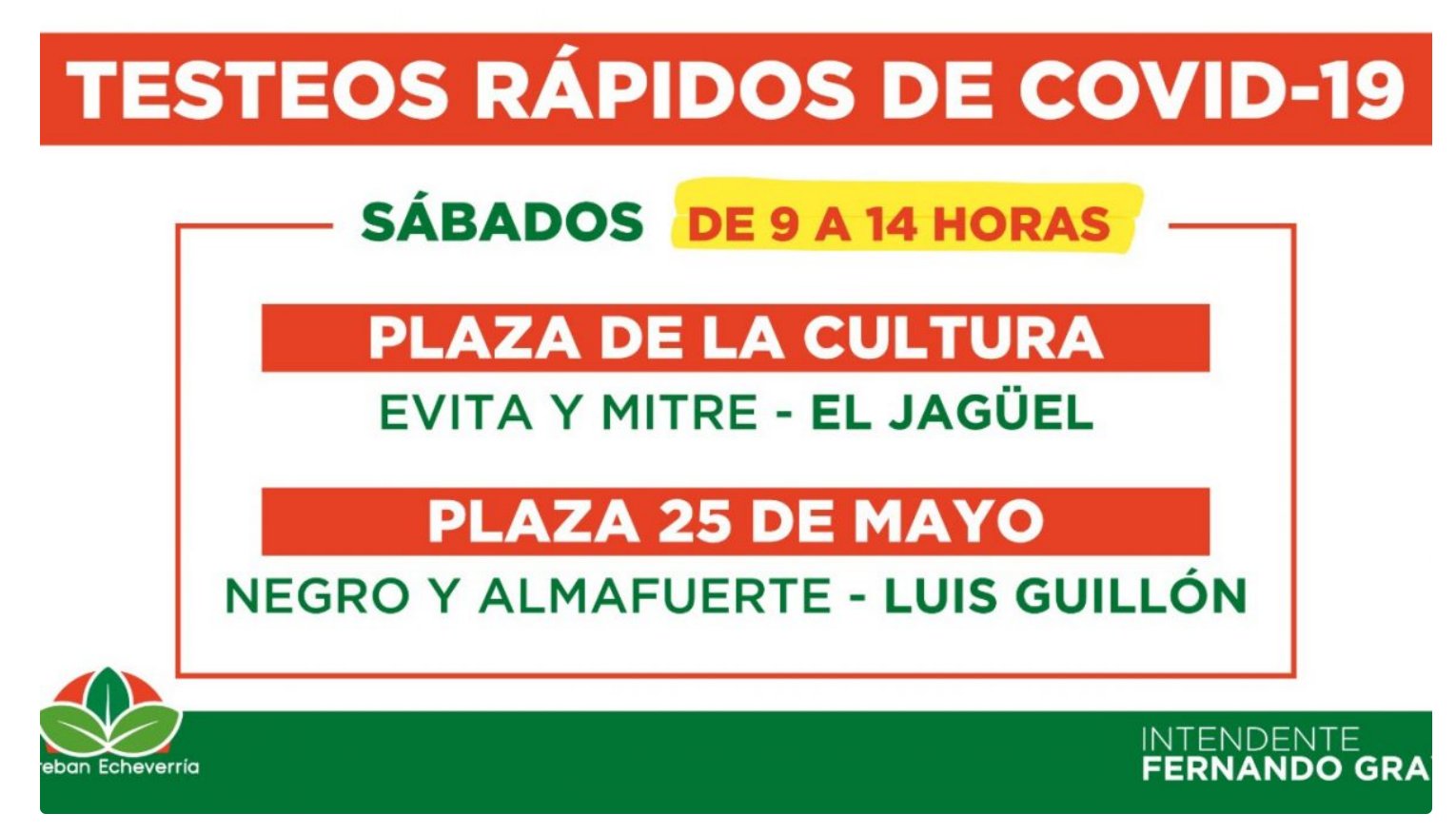 NO TODOS APUESTAN AL SUICIDIO: TESTEOS DE COVID-19 EN ESTEBAN ECHEVERRÍA 22 marzo, 2024 Posted on marzo 22, 2024 por coronado https://www.estebanecheverria.gob.ar/testeos-de-covid-19-en-esteban-echeverria-49/