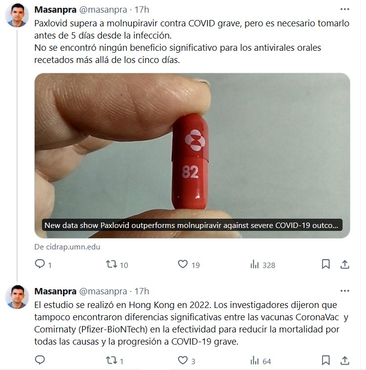 Paxlovid supera a molnupiravir contra COVID grave, pero es necesario tomarlo antes de 5 días desde la infección. No se encontró ningún beneficio significativo para los antivirales orales recetados más allá de los cinco días