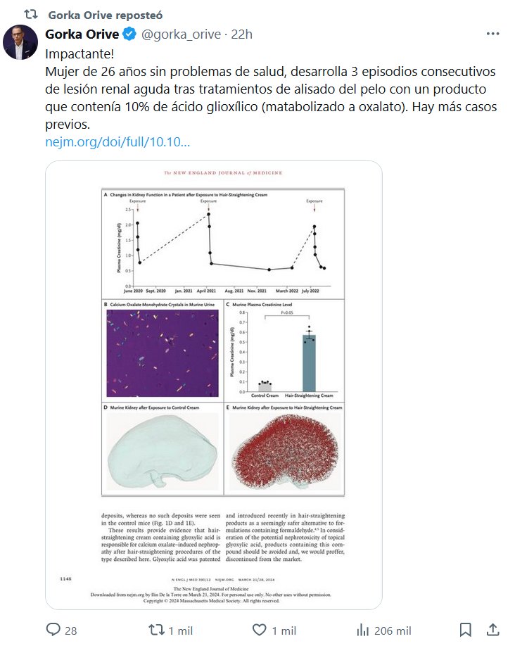 PESTE CAPITALISTA DESCONTROLADA Impactante! Mujer de 26 años sin problemas de salud, desarrolla 3 episodios consecutivos de lesión renal aguda tras tratamientos de alisado del pelo con un producto que contenía 10% de ácido glioxílico (matabolizado a oxalato). Hay más casos previos.