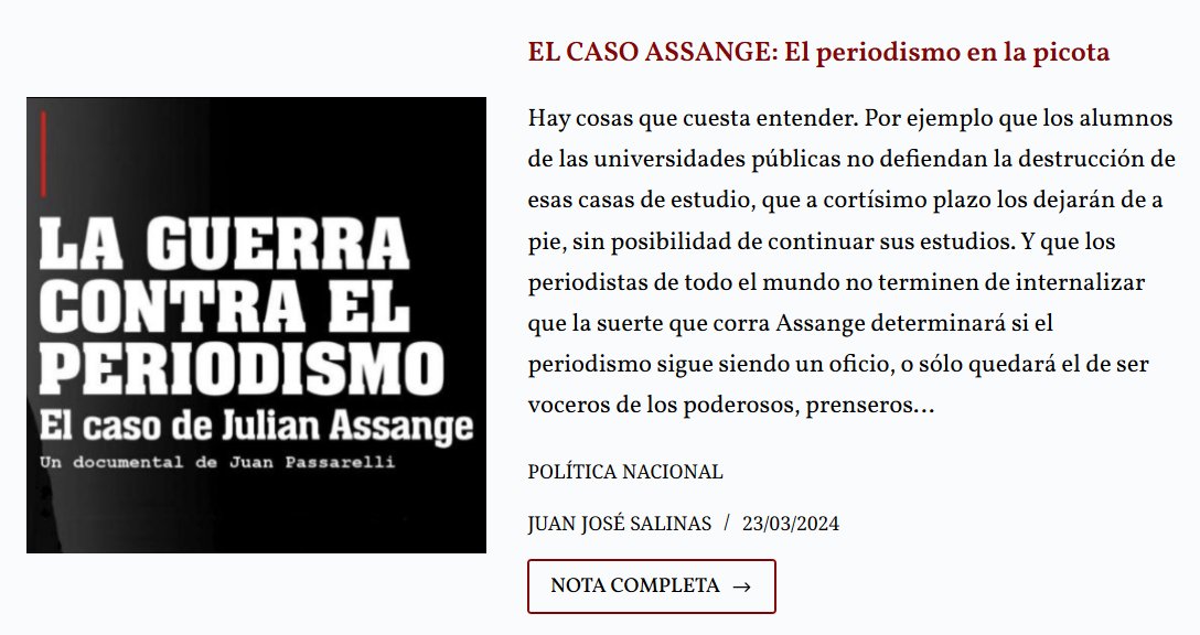Hay cosas que cuesta entender. Por ejemplo que los alumnos de las universidades públicas no defiendan la destrucción de esas casas de estudio, que a cortísimo plazo los dejarán de a pie, sin posibilidad de continuar sus estudios. Y que los periodistas de todo el mundo no terminen de internalizar que la suerte que corra Assange determinará si el periodismo sigue siendo un oficio, o sólo quedará el de ser voceros de los poderosos, prenseros…