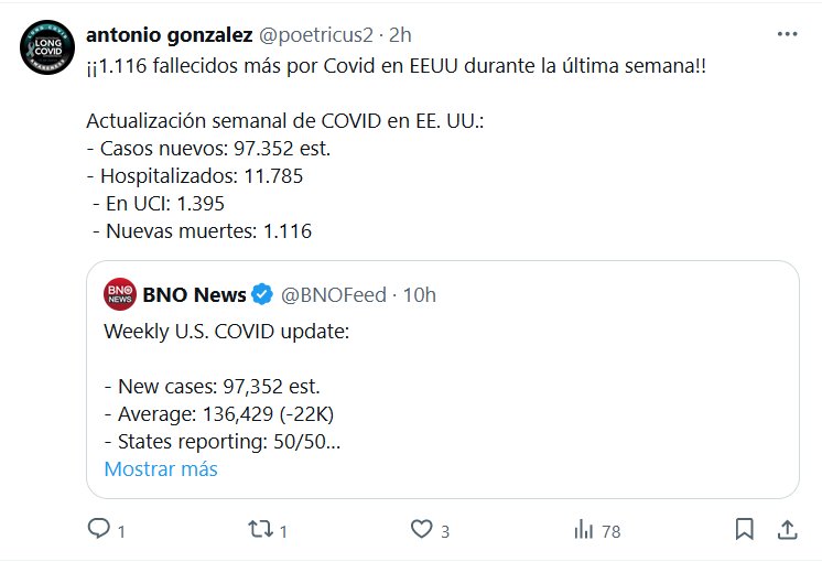 ¡¡1.116 fallecidos más por Covid en EEUU durante la última semana!! Actualización semanal de COVID en EE. UU.: – Casos nuevos: 97.352 est. – Hospitalizados: 11.785 – En UCI: 1.395 – Nuevas muertes: 1.116