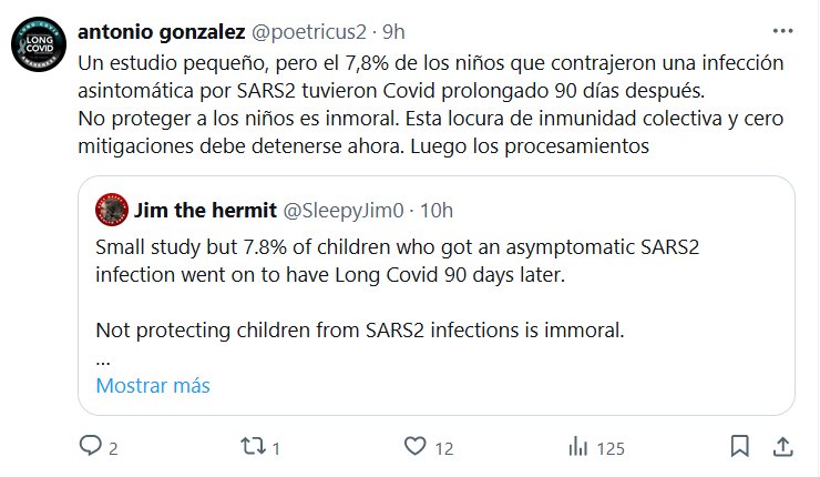 LESA HUMANIDAD Un estudio pequeño, pero el 7,8% de los niños que contrajeron una infección asintomática por SARS2 tuvieron Covid prolongado 90 días después. No proteger a los niños es inmoral. Esta locura de inmunidad colectiva y cero mitigaciones debe detenerse ahora. Luego los procesamientos